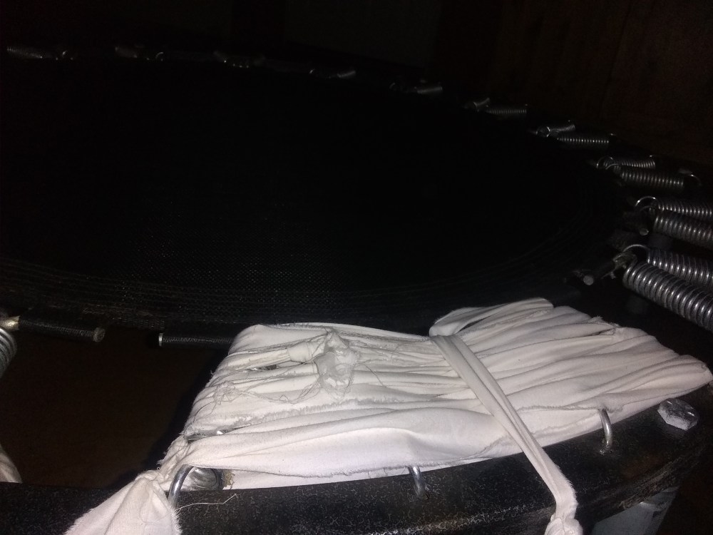 I am doing a lot of crafty things, as I am finishing the renovation aspect of mold remediation in my younger children’s room. Above, is our sanitized trampoline, that I removed the ripped cover off of and am slowly transforming into a hopefully-beautiful play piece for their room.